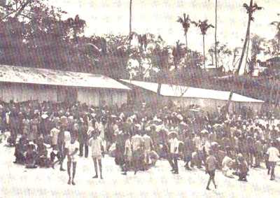 (图)越南非法移民集中在勿刹岛供应货库前等候接受食物